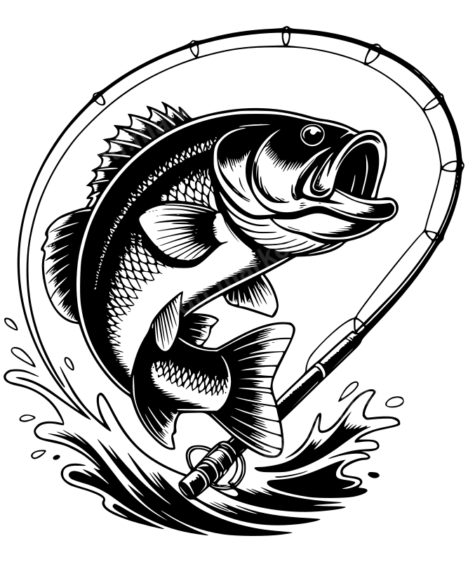 Jumping Bass Fishing Rod DTF Transfer | Angler Heat Press Design