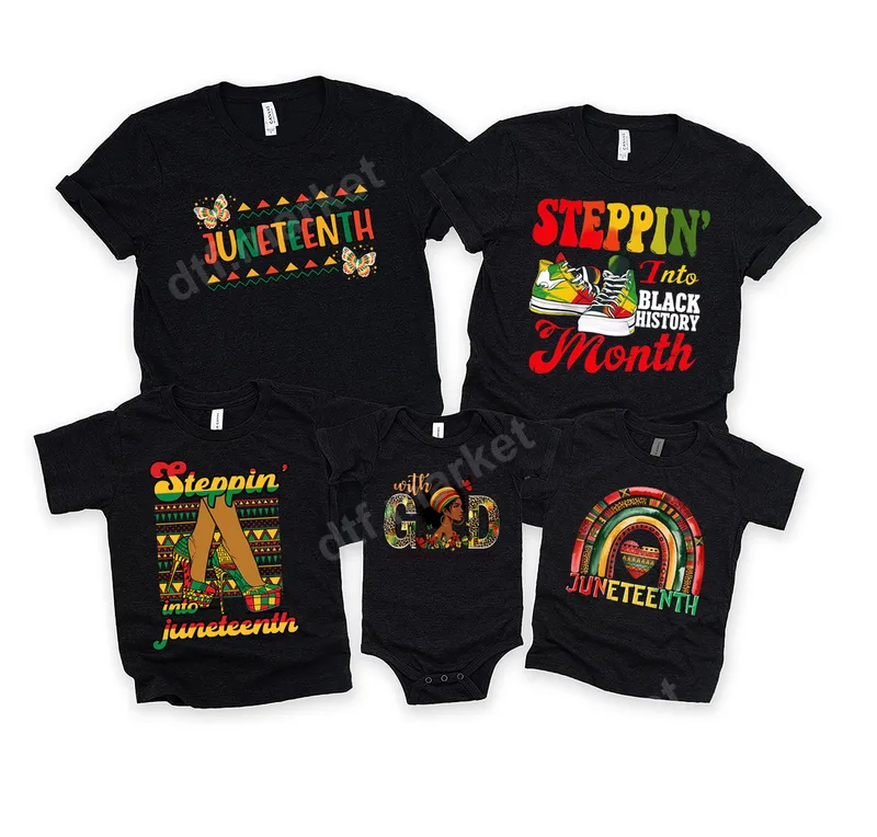See allCelebrate freedom and heritage with our vibrant Juneteenth Butterfly DTF Transfer. This eye-catching design features the word "JUNETEENTH" in bold, striking colors of green, orange, and red, framed by festive geometric patterns. Graceful butterflies add a touch of natural beauty and symbolism to this powerful emblem of liberation. It's a high-quality, ready to press DTF transfer designed to bring your apparel to life with minimal effort and maximum impact. This Juneteenth transfer is perfect for individuals, families, and community groups looking to honor and commemorate this significant day. Whether you're attending a Juneteenth parade, a family reunion, a cultural festival, or simply showing your pride, this design is ideal. It makes a thoughtful gift for friends and loved ones who cherish Black history and freedom, allowing them to wear their celebration on custom t-shirts, sweatshirts, or tote bags. Applying this direct to film transfer is straightforward and efficient. Our durable heat transfer works seamlessly with cotton, polyester, and various fabric blends. For best results, use a heat press at 300-325°F for 15 seconds with medium pressure, then peel cold. You can even use a household iron for smaller applications, following similar temperature guidelines. Unlike traditional vinyl transfers, there's no weeding required, saving you time and ensuring a professional finish every time. Experience professional-grade quality with every iron on transfer. Our DTF prints boast incredibly vibrant colors that are crack-resistant and designed for long-lasting wear, maintaining their brilliance wash after wash. The soft-touch finish ensures comfort when worn, feeling like part of the fabric. Each heat press design is printed on premium DTF film with a strong, reliable adhesive, ensuring excellent adhesion and durability for your custom apparel.