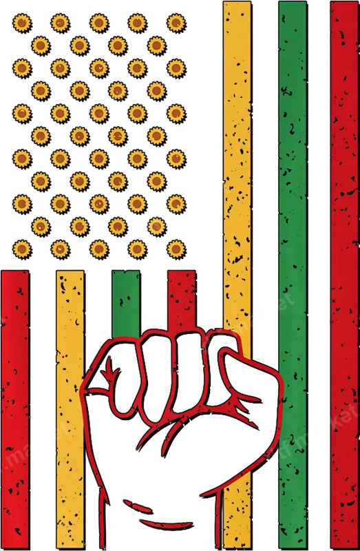 See allThis powerful DTF transfer blends American patriotism with Black cultural heritage. The distressed flag design features vibrant sunflowers instead of stars, symbolizing joy and longevity. Its stripes are reimagined in Pan-African colors—black, yellow, green, and red—creating a distinctive and meaningful aesthetic. Overlaying these is a bold, red-outlined raised fist, a timeless emblem of solidarity and strength. This ready to press design is perfect for making a significant statement. This expressive DTF transfer is ideal for celebrating Juneteenth, Black History Month, or cultural pride events. Perfect for activists, community organizers, students, and families honoring Black heritage and advocating for social justice. This versatile heat press transfer makes a thoughtful gift, allowing personalization of apparel and accessories with a powerful symbol for friends and loved ones. Applying this direct to film transfer is straightforward and hassle-free, suitable for all crafters. It adheres beautifully to cotton, polyester, and various blends. Use a heat press at 300-325°F for 15 seconds with medium pressure for a professional finish. A household iron can also be used. No tedious weeding is required; simply press and peel! Crafted with professional-grade DTF film, this heat press ready design guarantees exceptional quality and durability. Vibrant colors remain crack-resistant and soft to the touch, even after multiple washes. Our advanced printing technology ensures intricate details are captured flawlessly, and the strong adhesive provides a long-lasting bond to your garments. Create custom apparel that looks great and proudly displays your message.
