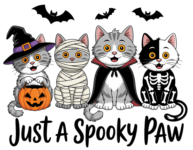 Just A Spooky Paw - Perfect for Halloween! High-quality DTF transfer design featuring adorable spooky animals. Ready to press on t-shirts, hoodies, and more.