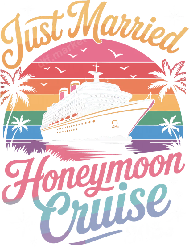 See allEmbark on your romantic journey with our "Just Married Honeymoon Cruise" DTF transfer. This vibrant design captures the essence of a tropical getaway, featuring a sleek cruise ship sailing into a retro-colored sunset, flanked by swaying palm trees. The joyful "Just Married" and "Honeymoon Cruise" typography, in a gradient pastel palette, perfectly encapsulates the celebratory mood. This stunning, ready to press direct to film transfer brings vacation dreams to life on fabric. This unique heat press design is tailor-made for newlyweds, couples celebrating anniversaries, or anyone dreaming of a romantic cruise vacation. It's an ideal choice for creating matching shirts for your honeymoon trip, unique wedding gifts, or commemorative apparel. Surprise your partner with custom t-shirts or tote bags that showcase your excitement. This design also makes a thoughtful gift for friends or family. Applying this premium heat transfer is incredibly easy, perfect for both crafting enthusiasts and small businesses. Our iron on transfers work seamlessly with a heat press at 300-325°F for 15 seconds with medium pressure, or a household iron. Forget weeding or layering; this ready to press transfer requires no extra work, allowing you to achieve professional-quality results on cotton, polyester, and blend fabrics. Crafted using high-quality DTF film and inks, this apparel transfer ensures exceptional durability and a brilliant finish. The colors are incredibly vibrant, resistant to cracking, peeling, and fading, ensuring your garment looks fantastic through countless washes. Enjoy a soft, smooth feel, providing maximum comfort without bulky texture. Trust our professional-grade DTF transfers for beautiful, long-lasting custom apparel.