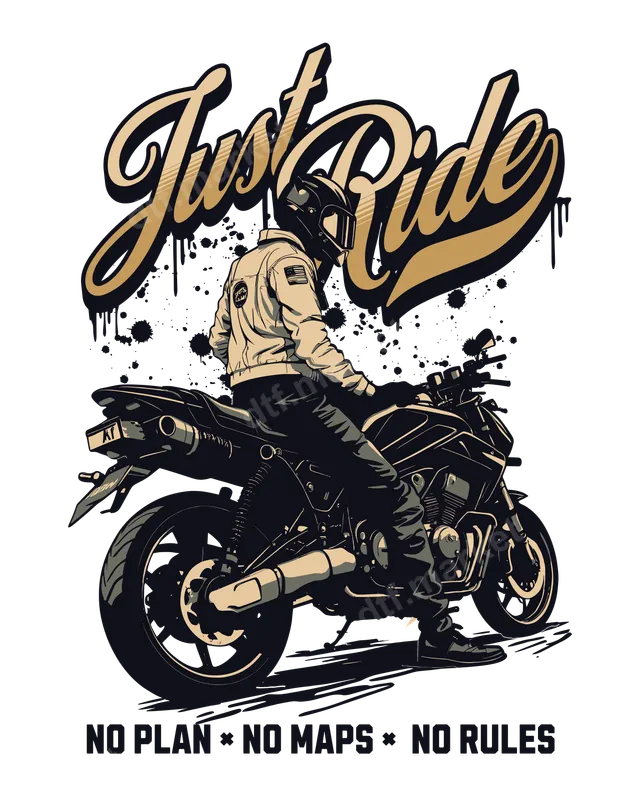 See allUnleash your inner rebel with this dynamic 'Just Ride' DTF transfer, perfect for anyone who lives for the open road. This eye-catching design showcases a sleek motorcycle with a helmeted rider, exuding a cool, adventurous vibe. Above, the stylized 'Just Ride' script with a subtle drip effect commands attention, while the bold declaration 'NO PLAN * NO MAPS * NO RULES' captures the spirit of true freedom. This ready to press design is an ideal statement piece for custom apparel. This versatile heat press transfer is designed for motorcycle enthusiasts, thrill-seekers, and anyone who cherishes the freedom of the ride. It makes an excellent gift for dads, brothers, or friends who love to hit the open road, perfect for birthdays, Father's Day, or just because. Elevate your wardrobe for rallies, bike meets, or everyday wear with this iconic shirt design that speaks volumes about your adventurous spirit and love for two wheels. Applying this iron on transfer is a breeze, making it suitable for both professional and home users. Our high-quality direct to film transfer works seamlessly on a wide range of fabrics, including cotton, polyester, and various blends. For best results, use a heat press at 300-325°F for 15 seconds with medium pressure. No specialized weeding is required, saving you time and effort. Simply peel cold for a perfect, crisp finish every time. Experience superior quality with our durable heat press ready transfers. Each design is printed with vibrant, long-lasting colors that resist cracking and peeling, ensuring your custom garment looks fantastic wash after wash. The finished transfer boasts a soft-hand feel, becoming one with the fabric for ultimate comfort. Trust our professional-grade DTF film for a smooth, high-quality application that rivals screen printing.