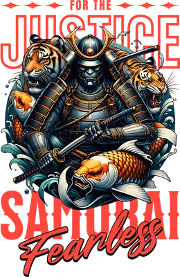 Justice Fearless Samurai DTF Transfer with Tigers & Koi Fish