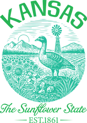 Kansas The Sunflower State DTF Transfer | Rustic Goose Windmill Design