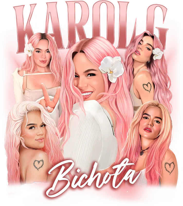 Karol G Bichota DTF Transfer | Pink Hair Latin Music Pop Star Design