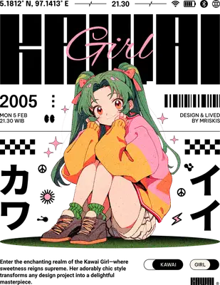 Kawaii Anime Girl DTF Transfer | Y2K Aesthetic Ready to Press Design