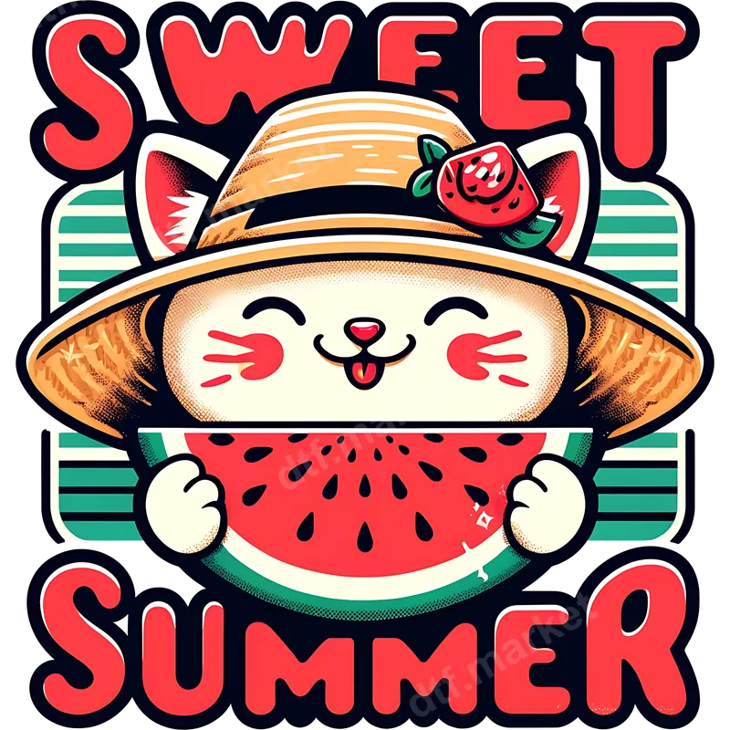 See allThis charming DTF transfer features a delightful kawaii cat, happily wearing a straw hat adorned with a sweet strawberry. The cheerful feline holds a juicy slice of watermelon, embodying the pure joy of the season. Bold, playful text reads "SWEET SUMMER" above and below, capturing the essence of sunny days and relaxed vibes. This vibrant direct to film transfer is perfect for adding a touch of cuteness and summer cheer to any item, arriving ready to press onto your chosen fabric. This adorable heat press design is ideal for cat lovers, kawaii enthusiasts, and anyone looking to inject some summer fun into their wardrobe or accessories. It’s perfect for summer vacations, beach trips, outdoor picnics, or simply celebrating the season at home. Make unique gifts for friends, family, or children who adore cute animals and vibrant, playful designs. It’s an excellent choice for crafting personalized apparel for summer events or as a cheerful back-to-school statement. Our premium DTF transfers are designed for effortless application on a wide range of materials, including cotton, polyester, and various fabric blends. For best results, use a heat press at 300-325°F for 15 seconds with medium pressure, followed by a cool peel. This ready to press transfer also works well with a household iron, ensuring accessibility for all crafters. Enjoy a professional finish without the hassle of weeding or layering, making your customization projects quick and simple. Experience superior quality with our durable heat transfer designs. Each iron on transfer boasts vibrant colors, excellent wash durability, and is highly crack-resistant, ensuring your designs look fantastic for a long time. The specialized DTF film provides a soft, flexible feel that seamlessly integrates with your garment, offering a high-quality finish. With strong adhesive properties, these apparel transfers create a lasting bond with your fabric, perfect for everyday wear.