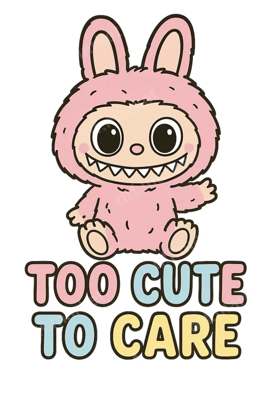 Kawaii Fanged Monster "Too Cute To Care" DTF Transfer | Sassy Pastel Heat Press Design