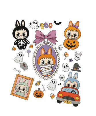 See allUnleash adorably spooky vibes this Halloween with our Kawaii Halloween Bunny & Friends DTF transfer sheet! This charming design features a delightful collection of characters, including a playful bunny dressed as a skeleton, another as a smiling pumpkin, and a mummy bunny peeking from an ornate frame. Surrounded by whimsical ghosts, scattered bones, sweet candies, and even a bunny driving a little car, this vibrant DTF transfer is ready to press and brings a unique blend of cute and creepy to any garment or accessory. This enchanting heat transfer design is perfect for anyone who loves a touch of cuteness with their Halloween spirit. Ideal for parents creating custom outfits for their kids' trick-or-treating adventures, crafters designing unique fall apparel, or small business owners looking to add charming seasonal items to their inventory. It makes a fantastic iron on transfer for family matching shirts for Halloween parties, school events, or as a fun gift for friends who adore kawaii aesthetics. Applying this high-quality heat press transfer is a breeze! It works beautifully on cotton, polyester, cotton-poly blends, and even nylon fabrics. Simply use a heat press (recommended 300-325°F for 15 seconds with medium pressure) or a household iron. There’s no tedious weeding required—just peel and press for instant results. Customize t-shirts, hoodies, sweatshirts, tote bags, pillow covers, baby onesies, and denim jackets. For lasting durability, wash garments inside out and tumble dry on low heat. Our ready to press transfer ensures vibrant, full-color printing with exceptional fine detail, making every character pop. It’s crack-resistant and boasts a soft-to-the-touch feel, completely free from that heavy, rigid vinyl sensation. Each direct to film transfer is printed on premium DTF film with a strong adhesive backing, guaranteeing professional-grade results that will stand out season after season.