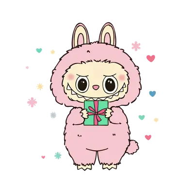 Kawaii Pink Monster Bunny Holding Gift DTF Transfer
