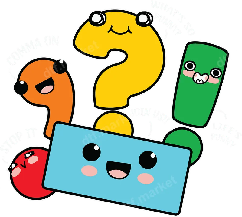 Kawaii Punctuation Pun DTF Transfer | Funny Grammar Humor Ready to Press