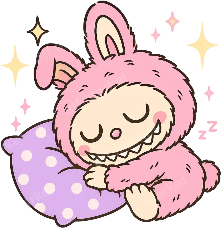 Kawaii Sleeping Pink Bunny Monster DTF Transfer - Comfy Zzz Design
