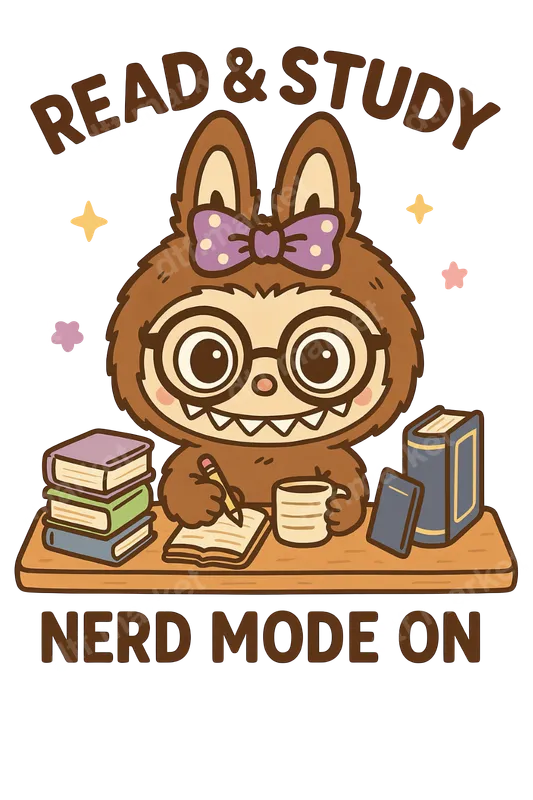See allThis charming DTF transfer features an irresistibly cute, slightly quirky sloth-like character, complete with glasses, a sweet purple bow, and tiny fangs, diligently focused on reading and studying. Surrounded by stacks of books and a warm cup of coffee, this little intellectual is ready to declare "NERD MODE ON!" The design boasts a kawaii, chibi art style with soft, inviting colors and sparkling accents, capturing a playful yet dedicated student vibe perfect for anyone who loves to learn or embrace their inner bookworm. This delightful iron on transfer is an ideal choice for students of all ages – from diligent high schoolers and college scholars to lifelong learners and book club members. It makes a fantastic gift for graduation, back-to-school, or simply to celebrate academic achievements and a love for reading. Small t-shirt businesses, Etsy sellers specializing in custom apparel, and crafters looking for unique heat transfer designs will find this motif appealing for its broad appeal and charming character. It's also perfect for teachers, librarians, or anyone who champions education and intellectual curiosity. Applying this heat press transfer is a breeze, suitable for various materials including cotton, polyester, cotton-poly blends, and even nylon. Achieve professional results with a heat press set between 300-325°F for 15 seconds with medium pressure, or easily use a household iron. There's no tedious weeding required – just peel and press! Create custom t-shirts, cozy hoodies, stylish tote bags for carrying books, unique pillow covers for dorm rooms, or even personalized aprons for crafty endeavors. For lasting durability, simply wash garments inside out and tumble dry on low heat. Our ready to press transfer ensures vibrant, full-color printing with exceptional detail, bringing this adorable design to life. It’s crack-resistant and soft to the touch, avoiding the heavy, stiff feel often associated with traditional vinyl transfers. Each direct to film transfer is meticulously printed on premium DTF film, featuring a strong adhesive backing for consistent, professional-quality applications every single time, making your apparel truly stand out.