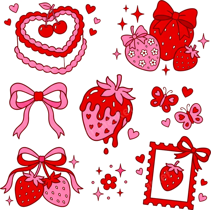 Kawaii Strawberry Heart Cake Bows DTF Transfer | Y2K Aesthetic