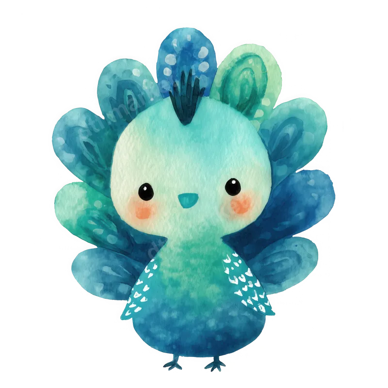 Kawaii Watercolor Peacock Bird DTF Transfer | Ready to Press Heat Transfer Design