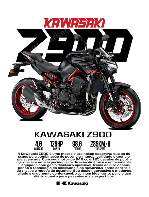 Kawasaki Z900 Motorcycle DTF Transfer | Sport Bike Design