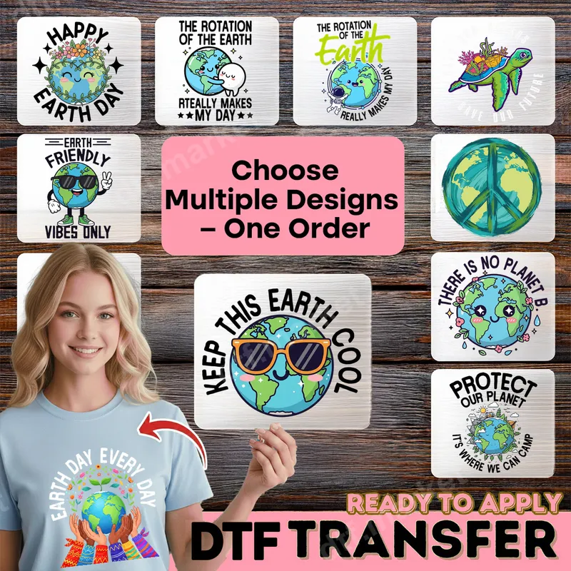See allThis adorable "Keep This Earth Cool" DTF transfer features a charming, anthropomorphic Earth wearing stylish sunglasses, delivering a positive and playful message about environmental care. This vibrant, ready to press design is perfect for adding a touch of personality to your apparel. It’s a high-quality DTF transfer that ensures brilliant colors and crisp details on any garment, making it super easy to create custom t-shirts and more. Ideal for eco-conscious individuals, students, teachers, and anyone passionate about protecting our planet, this heat transfer design is perfect for Earth Day celebrations, school events, environmental awareness campaigns, or simply showing off your love for nature every day. It also makes a thoughtful and unique gift for friends and family who advocate for a cooler, greener Earth. Applying this durable heat press transfer is a breeze! Designed for versatility, it works beautifully on a wide range of fabrics, including cotton, polyester, and various blends. For best results, use a heat press at 300-325°F for 15 seconds with medium pressure. Even a household iron can achieve great results with careful application. Best of all, there's absolutely no weeding required, making your crafting process quick and enjoyable. Crafted using professional-grade DTF film, this iron on transfer boasts exceptional durability. The colors are incredibly vibrant, resisting cracking and fading wash after wash. The design feels soft to the touch, seamlessly blending with your garment for a professional finish. Enjoy a long-lasting, eye-catching shirt design that keeps the Earth cool in style.