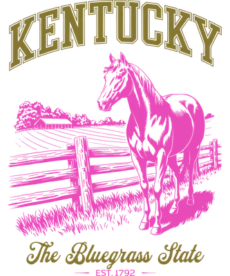 Kentucky Bluegrass State Pink Horse DTF Transfer