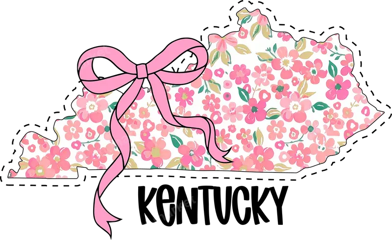 Kentucky Floral Map DTF Transfer with Pink Bow | Ready to Press