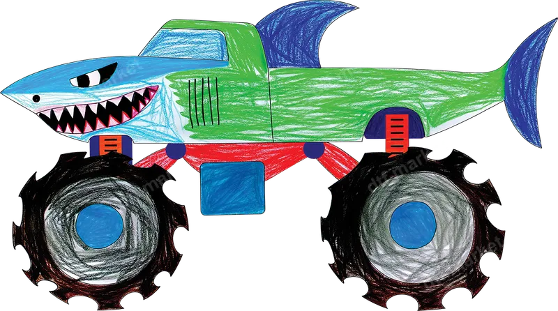 Kids Crayon Style Shark Monster Truck DTF Transfer