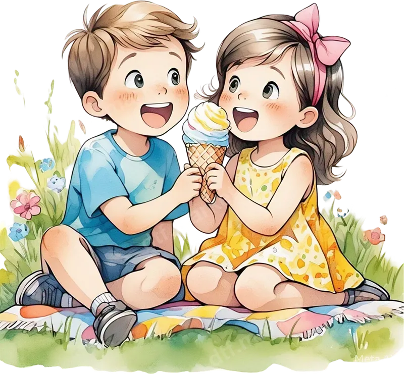 Kids Sharing Ice Cream DTF Transfer | Cute Summer Picnic Design