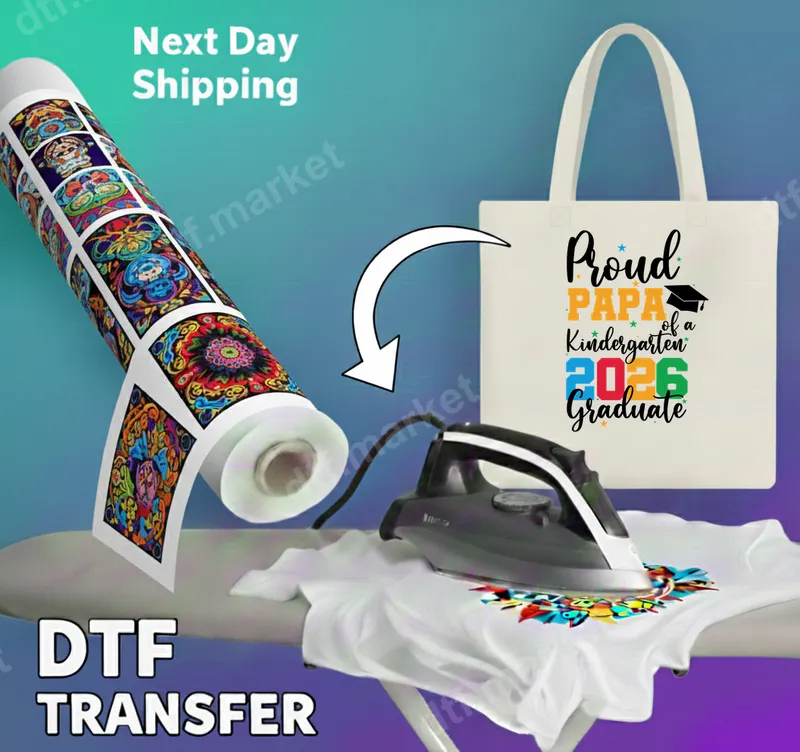 See allShow your immense pride with our "Proud PAPA of a Kindergarten 2026 Graduate" DTF transfer. This heartwarming design features bold, multi-colored typography for "PAPA," "Kindergarten," "2026," and "Graduate," complete with a playful graduation cap graphic. It's the perfect ready to press DTF transfer to commemorate this significant early educational milestone. This special heat transfer is designed for proud fathers and grandfathers celebrating their kindergarten graduate in 2026. It makes an excellent gift for dads, grandpas, or any family member wanting to sport their joy at graduation ceremonies, parties, or family gatherings. Imagine custom t-shirts, hoodies, or even tote bags, proudly displaying this joyous occasion. Applying this design is effortless. Our DTF transfer works beautifully on a wide variety of fabrics including cotton, polyester, and their blends. Simply use a heat press at 300-325°F for 15 seconds with medium pressure, or apply with a household iron. There's no complex weeding required, making this iron on transfer incredibly user-friendly for all skill levels. Crafted with professional-grade DTF film, this apparel transfer ensures vibrant, long-lasting colors that resist cracking and peeling. The soft-touch finish integrates seamlessly with your garment, providing a comfortable and durable custom look that will cherish memories for years to come. Our transfers are made to last, offering superior quality for your custom creations.