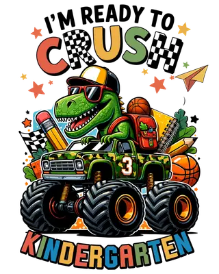 See allGear up for an epic first day with our "I'm Ready to Crush Kindergarten" DTF transfer! This vibrant design showcases a super cool green dinosaur, sporting sunglasses and a baseball cap, behind the wheel of a camouflage monster truck. Surrounded by fun school supplies like pencils, a backpack, and a basketball, this ready to press transfer captures the excitement and confidence of starting a new school adventure. It’s perfect for making a bold statement on the first day of kindergarten or celebrating a big milestone. This playful design is an ideal iron on transfer for parents, grandparents, and guardians looking to create unique back-to-school apparel. Small business owners and crafters will find this heat transfer design a fantastic addition to their custom clothing inventory, especially for children's boutiques or personalized gift shops. It's excellent for gifting to a new kindergartener, creating matching shirts for a kindergarten class, or simply boosting a child's confidence as they embark on their educational journey. Our premium heat press transfer works flawlessly on a variety of fabrics including cotton, polyester, and blends, even nylon. Simply apply with a heat press (300-325°F for 15 seconds with medium pressure) or a household iron – no weeding required! This makes creating custom t-shirts, hoodies, sweatshirts, tote bags, and even denim jackets incredibly easy. For lasting durability, wash garments inside out and tumble dry on low heat. Each ready to press transfer features vibrant, full-color printing with exceptional detail that resists cracking and peeling. The soft, lightweight feel ensures no heavy vinyl bulk, providing ultimate comfort for active kids. Printed on high-quality direct to film transfer film with a strong adhesive, you're guaranteed professional, durable results every time, making every garment a standout piece.