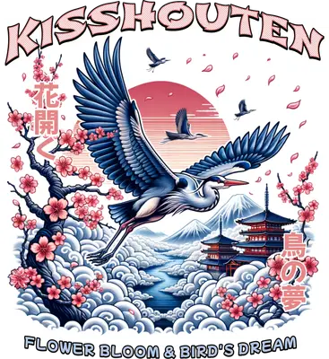 Kisshoutten Japanese Heron & Cherry Blossom DTF Transfer | Mount Fuji Art