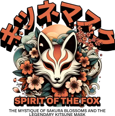 Kitsune Fox Mask DTF Transfer | Sakura Blossoms Japanese Art Design