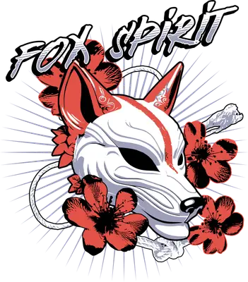 Kitsune Mask Fox Spirit DTF Transfer | Japanese Cherry Blossom Apparel