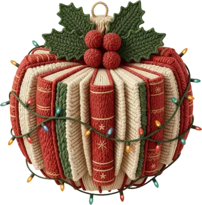Knitted Book Christmas Ornament DTF Transfer | Cozy Holiday Reading Design