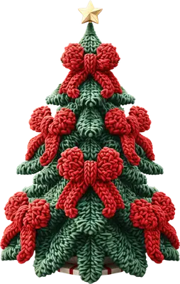 Knitted Christmas Tree DTF Transfer with Red Bows & Star