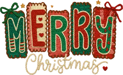 Knitted Cookie Style Merry Christmas DTF Transfer | Festive Holiday Apparel