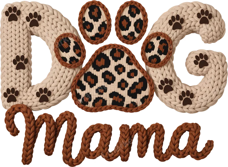 Knitted Dog Mama Leopard Paw Print DTF Transfer