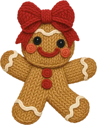 Knitted Gingerbread Girl DTF Transfer | Cozy Christmas Holiday Design