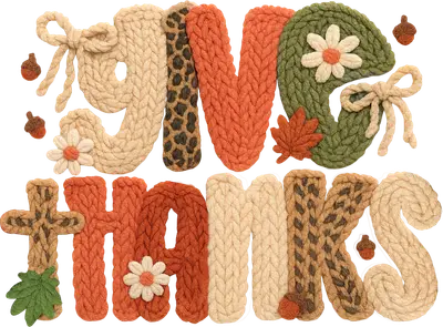 Knitted Give Thanks DTF Transfer | Cozy Thanksgiving Ready to Press Design