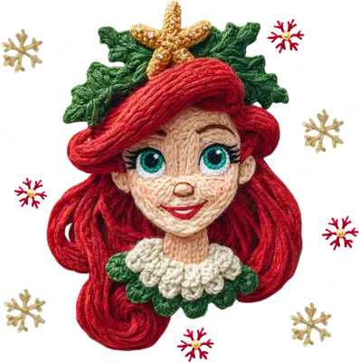 See allDive into holiday cheer with this enchanting knitted mermaid character DTF transfer, inspired by beloved tales. This unique design showcases a charming mermaid princess with flowing red yarn hair, sparkling blue eyes, and a festive holly and starfish crown, all rendered in a cozy, knit art style. Surrounded by whimsical snowflakes, this vibrant image captures a warm, handcrafted Christmas spirit. It's a truly beautiful, ready to press transfer that adds a touch of magic to any garment. This whimsical design is perfect for anyone who adores mermaids, princesses, or unique Christmas apparel. It makes an ideal iron on transfer for crafting personalized gifts for daughters, granddaughters, or friends who love fantasy and festive cheer. Small business owners creating custom holiday merchandise, Etsy sellers, or crafters looking for a standout heat transfer design for Christmas markets will find this piece irresistible. It's also fantastic for matching family holiday shirts or memorable outfits for Christmas events and trips. Applying this vibrant heat press transfer is a breeze on a wide range of materials including cotton, polyester, cotton-poly blends, and even nylon. For best results, use a heat press at 300-325°F for 15 seconds with medium pressure, or apply with a household iron. There's no tedious weeding required—simply peel and press for professional results every time. Perfect for custom t-shirts, cozy hoodies, festive sweatshirts, unique tote bags, fun pillow covers, cute baby onesies, and denim jackets. For lasting durability, wash garments inside out and tumble dry on low heat. Experience premium quality with every ready to press transfer. This design boasts vibrant, full-color printing with exceptional fine detail, bringing the intricate knit texture to life. Our transfers are crack-resistant, offering a soft hand feel with no heavy vinyl sensation, ensuring comfort and longevity. Each direct to film transfer is produced on premium DTF film with a strong, reliable adhesive backing, guaranteeing professional-grade application and stunning results that will impress.