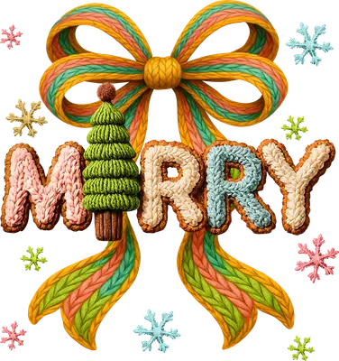 Knitted Merry Christmas Tree DTF Transfer Cozy Holiday Apparel