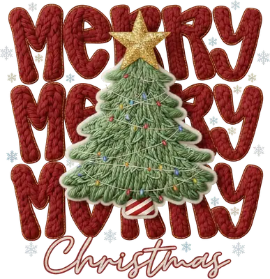 Knitted Merry Christmas Tree DTF Transfer | Cozy Holiday Design