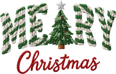 Knitted Merry Christmas Tree DTF Transfer | Festive Holiday Apparel Design