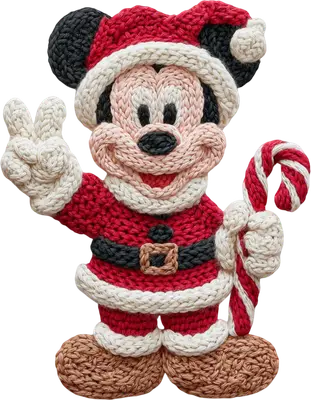 Knitted Mickey Santa DTF Transfer with Candy Cane