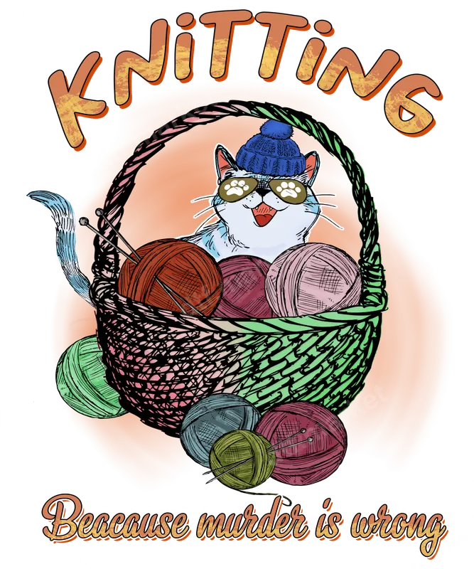Knitting Cat DTF Transfer: Beaccause Murder Is Wrong Funny Design
