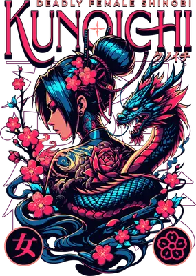 Kunoichi Deadly Female Shinobi & Dragon DTF Transfer