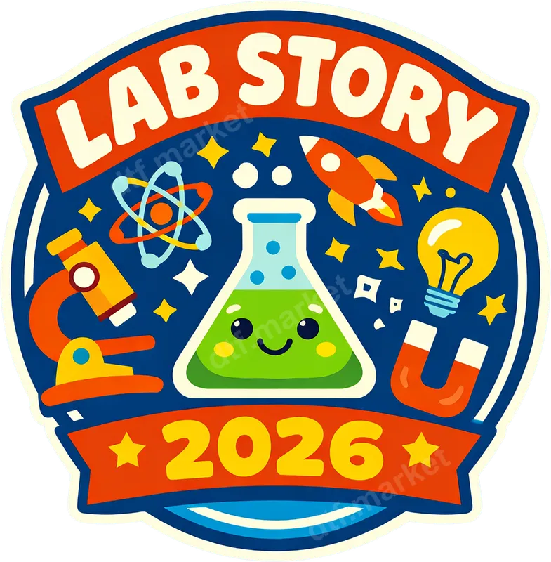 Lab Story 2026 Science DTF Transfer | Cute Beaker & Rocket Design