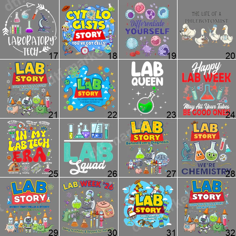 See allThis vibrant direct to film transfer captures the spirit of laboratory work with its playful "LAB STORY Every Test Tells A Story Lab Week 2026" design. Featuring an adorable cast of cartoon lab equipment – from cheerful microscopes to whimsical test tubes and beakers – this ready to press DTF transfer is packed with personality. The design bursts with bright colors, making it an eye-catching and fun celebration of the crucial work done in the lab, perfect for marking Lab Week 2026 with a touch of humor and camaraderie. This unique heat transfer is ideal for medical laboratory scientists, clinical laboratory technologists, phlebotomists, pathology assistants, and anyone passionate about science and diagnostics. It's a fantastic way to commemorate National Medical Laboratory Professionals Week 2026, making it perfect for team appreciation gifts, lab department spirit wear, or a personal statement of pride in your profession. Celebrate your lab story, honor your colleagues, or surprise a science enthusiast with this charming iron on decal. Our premium apparel transfer applies seamlessly to a wide range of fabrics, including 100% cotton, polyester, and various blends, ensuring versatility for your projects. For best results, use a heat press at 300-325°F for 15 seconds with medium pressure, then perform a cold peel. A household iron can also be used with care. Enjoy the convenience of a ready to press design that requires absolutely no weeding, saving you time and effort for quick, professional-looking results. Experience superior quality with our durable DTF transfers. Each heat press design boasts incredibly vibrant colors and sharp details that stand out, ensuring your custom apparel makes a statement. Engineered for longevity, these transfers are crack-resistant, fade-resistant, and incredibly soft to the touch, providing a comfortable wear experience. Our professional-grade DTF film offers strong adhesive properties for a lasting bond, making it an excellent alternative to traditional vinyl transfer applications.