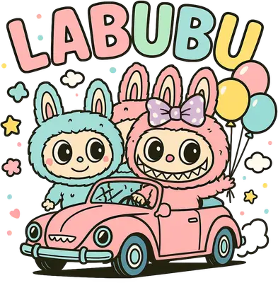 Labubu Driving Pink Car DTF Transfer | Cute Monster Pastel Design