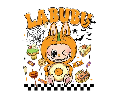Labubu Halloween Pumpkin DTF Transfer | Cute Monster Art