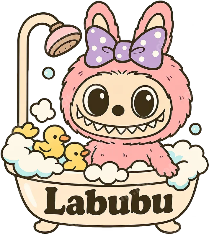 Labubu Monster Bathtub DTF Transfer | Kawaii Pink Creature Heat Press Design