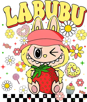 Labubu Strawberry Monster DTF Transfer | Kawaii Pop Culture Apparel