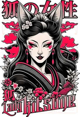 Lady Kitsune Fox Woman DTF Transfer | Anime Japanese Art Style